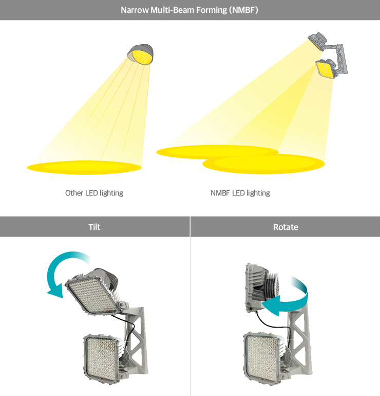 Each module can be individually rotated and tilted, and this minimizes interference among the module during the aiming process. This structure allows users to aim the light freely and concentrate the desired amount of light in the desired spots. This ensures that there will be optimal uniformity luminance.